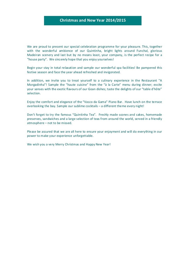 2015 Christmas Activity Programme Sample Hotel Benalmadena