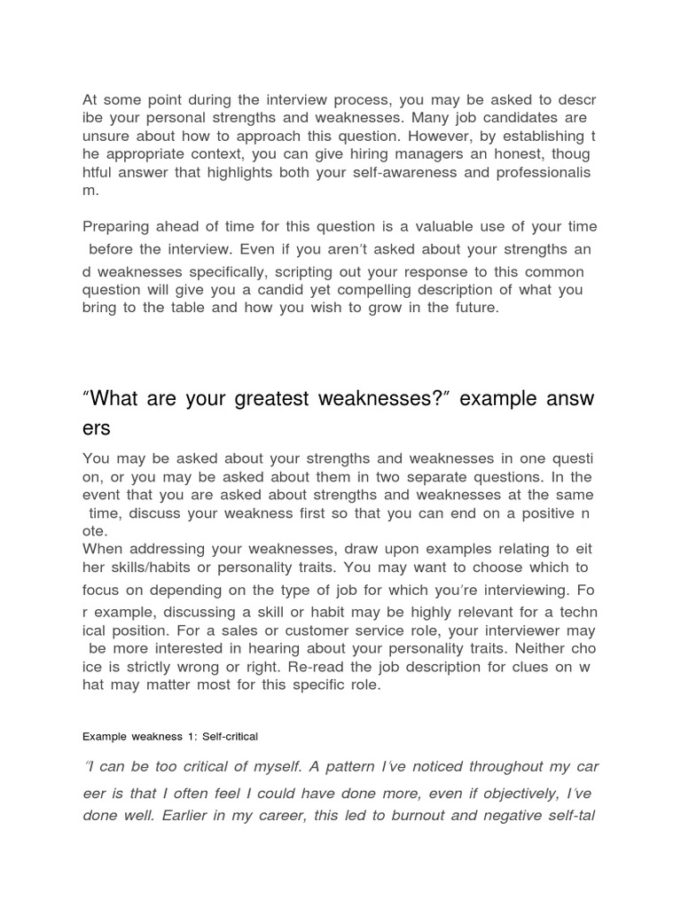 Interview Question What Is Your Greatest Weakness Example Answers