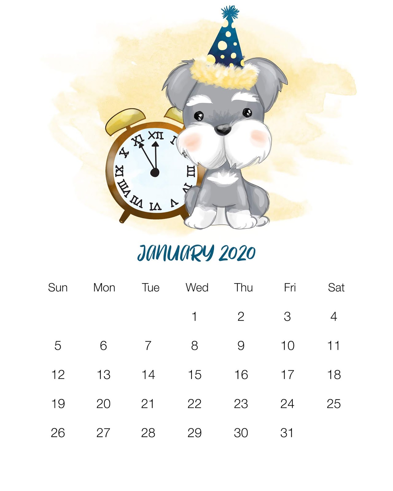 Watercolor Dogs Free Printable 2020 Calendar Oh My Fiesta In