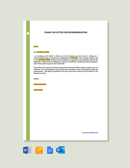 Thank You Letter For Recommendation 9 Free Word Excel Pdf